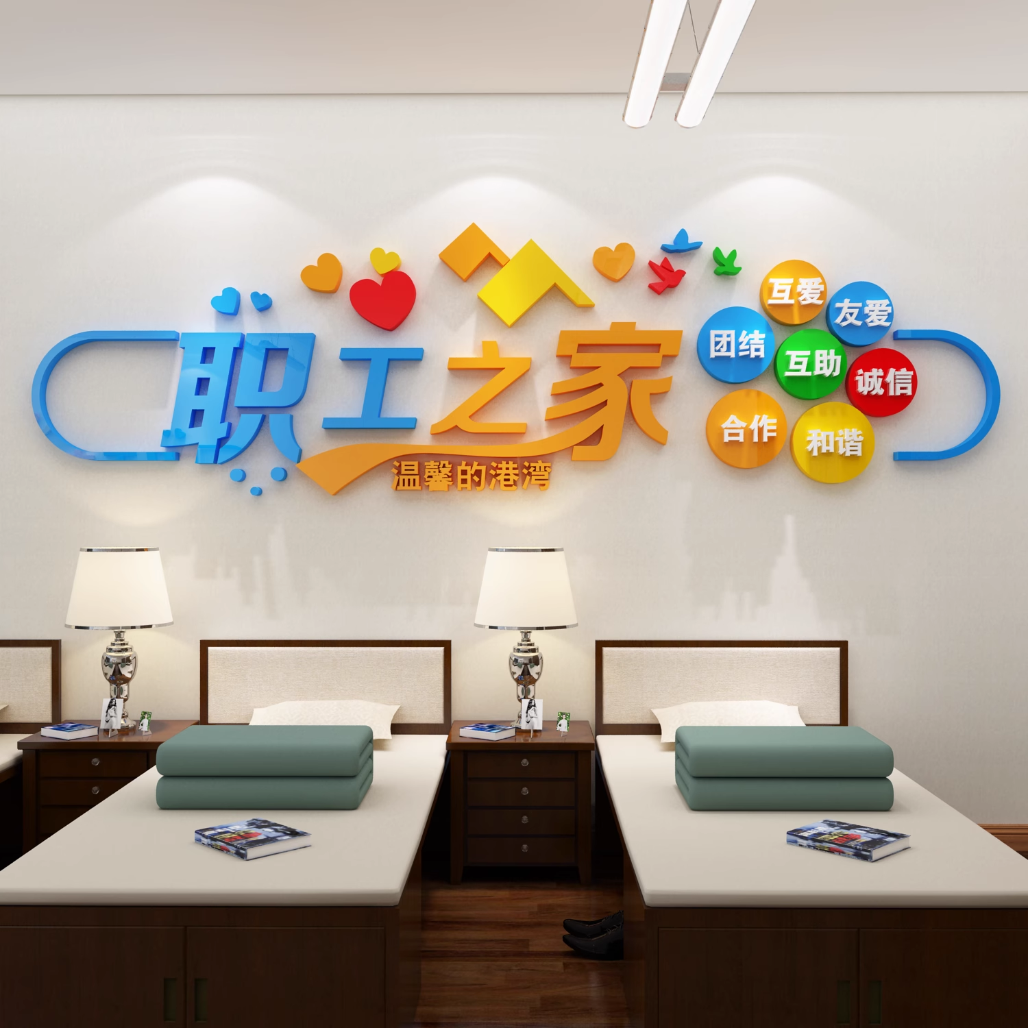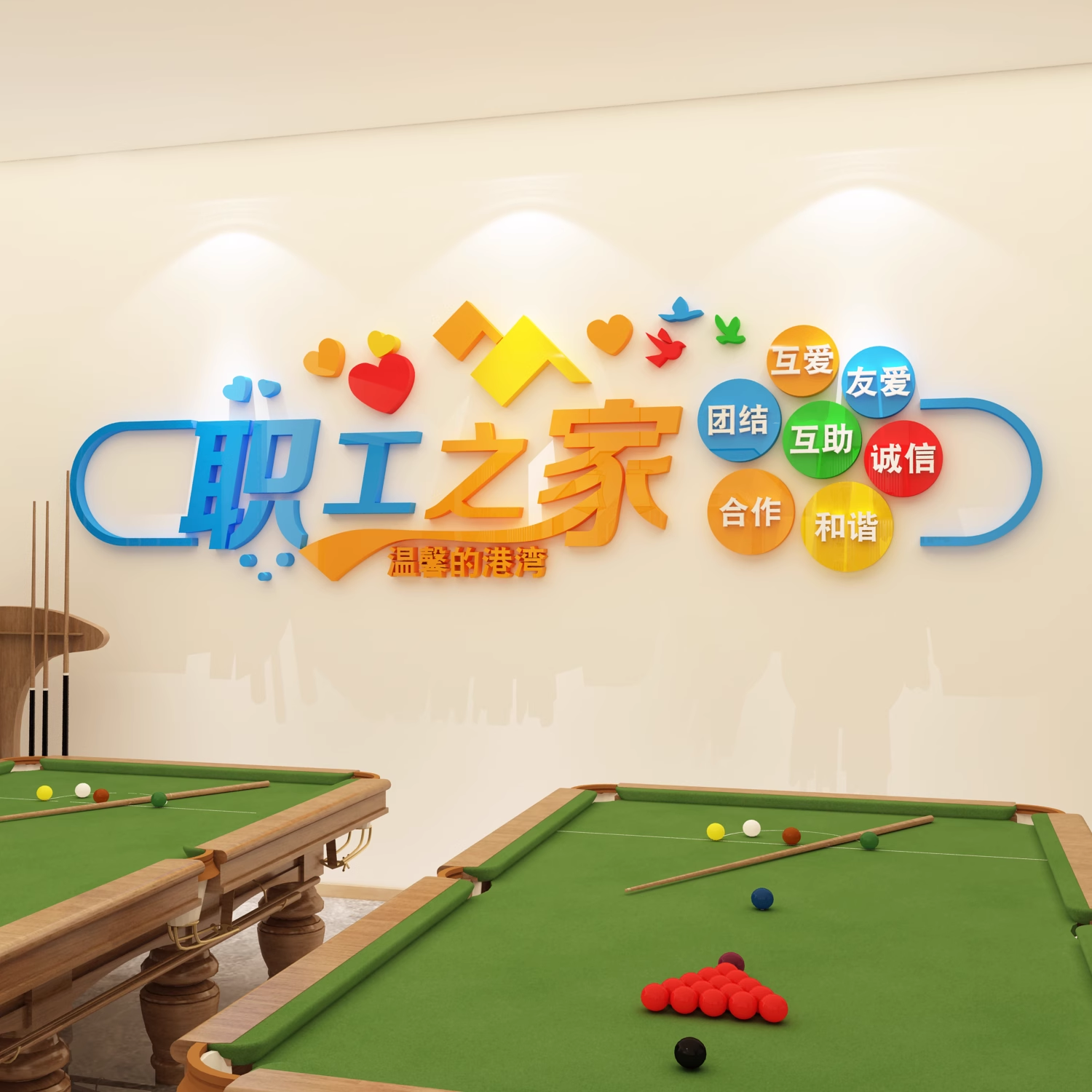 职工之家文化墙贴公司员工会小活动室休息区餐厅宿舍墙面布置装饰 - 80饰家