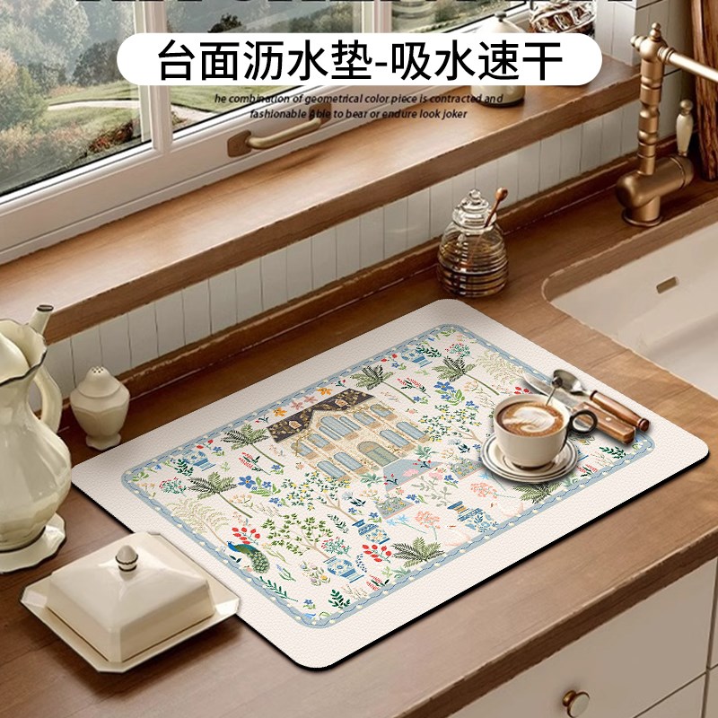 厨房台面c沥水垫硅藻泥吸水垫多功能咖啡机垫桌面水杯垫滤水隔水 - 瑞德馆日用品
