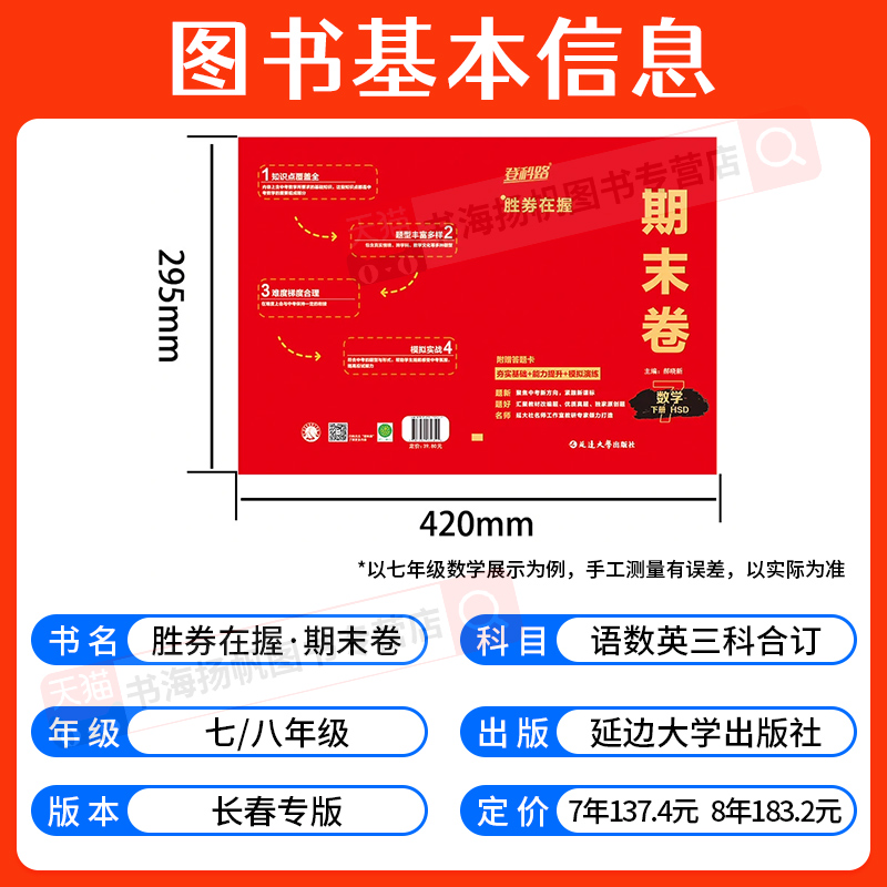 【长春专版】登科路胜券在握期末卷七年级八年级下册期末预测卷 送分宝盒初中语文数学英语三科合订礼盒装初一下初二下册延边大学 - 书海扬帆图书专营店