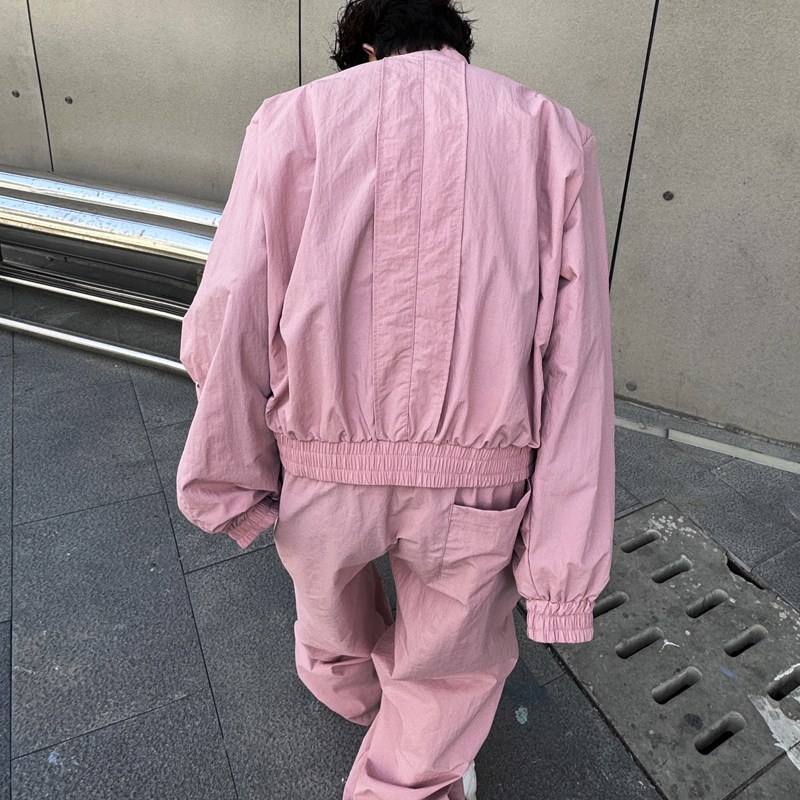 您的位置:他他商城  >   >  2024春季时尚小众结构设计感立领夹克男层次皱褶阔腿长裤两件套潮