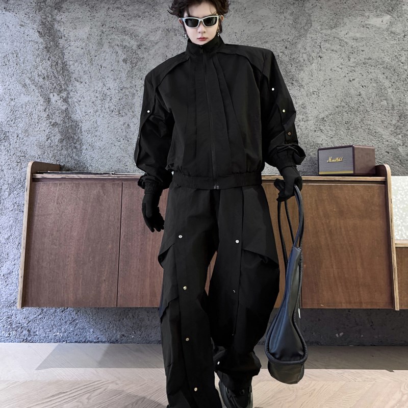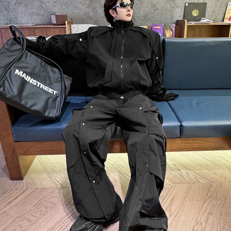 2024春季时尚小众结构设计感立领夹克男层次皱褶阔腿长裤两件套潮 - 华原严选店