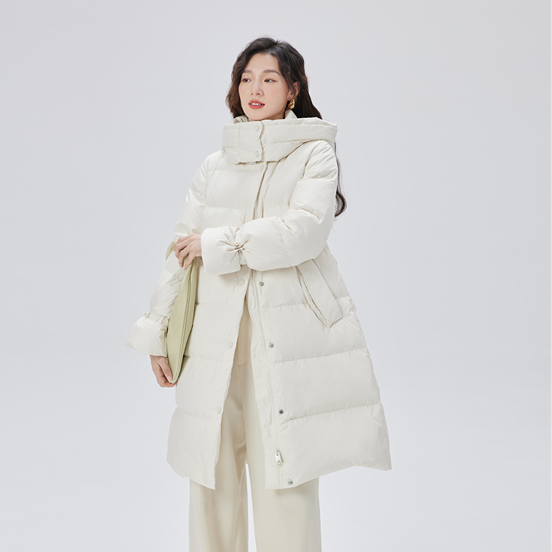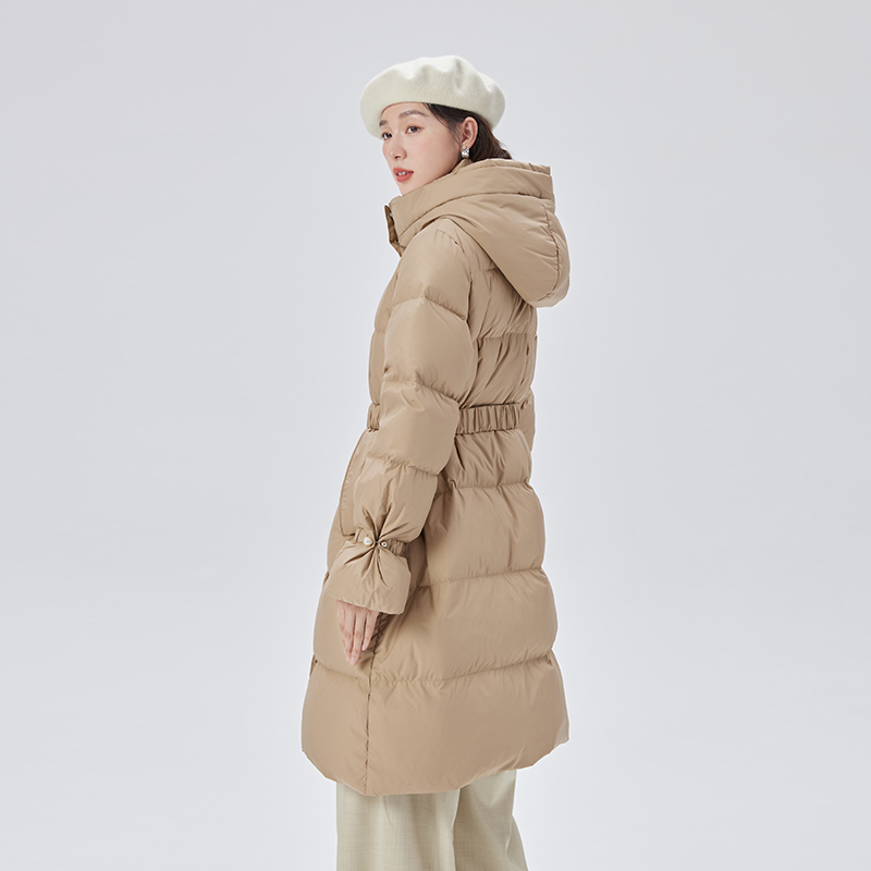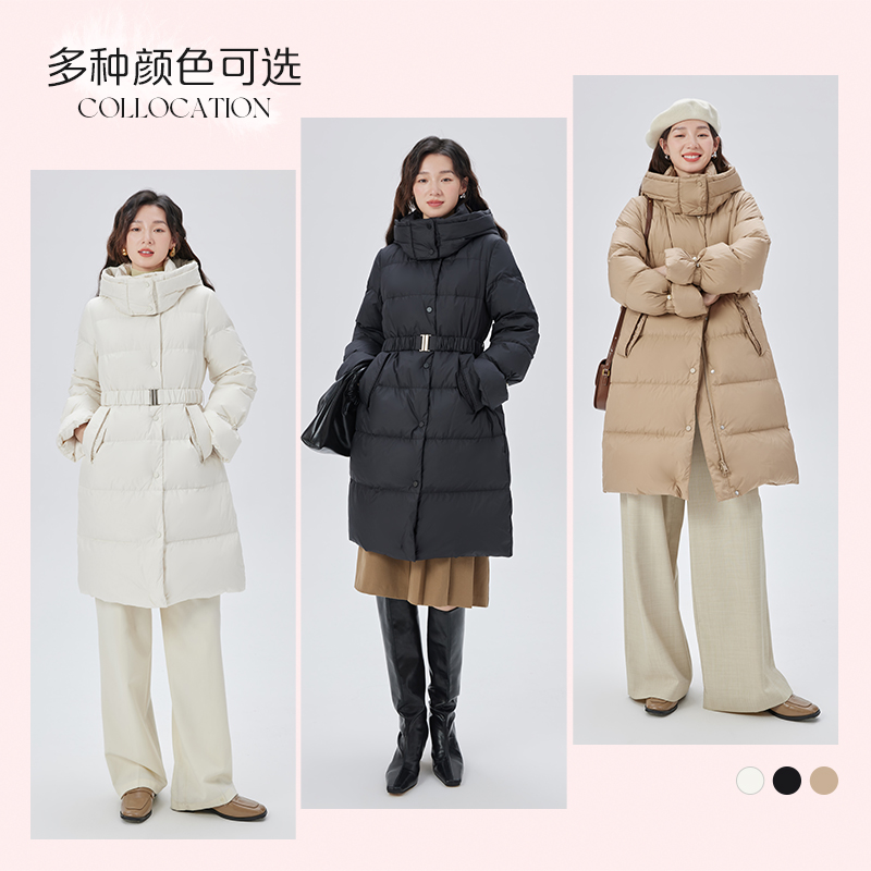 艾莱依收腰羽绒服女时尚新款时尚设计感中长款鸭绒保暖连帽外套冬 - 艾莱依官方旗舰店