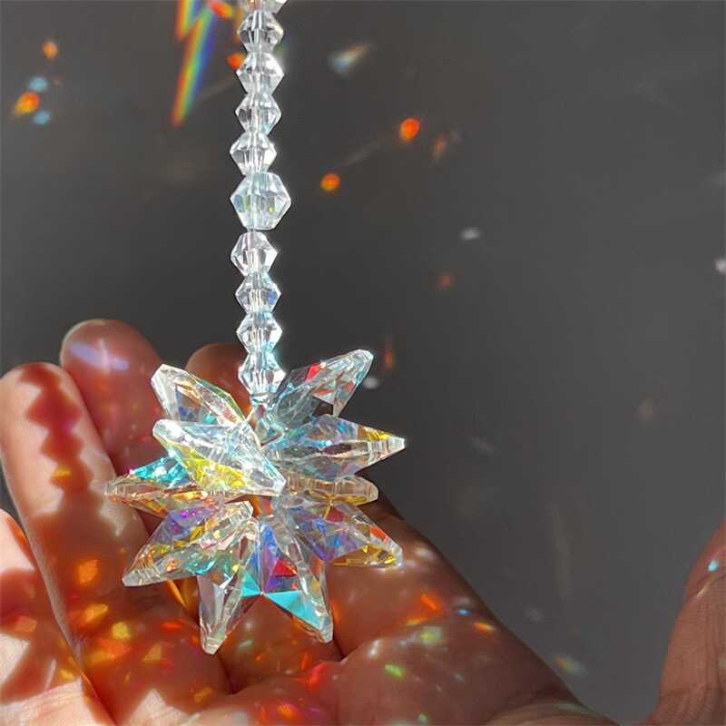 创意流光雪花水晶太阳捕手立体棱镜创意七彩挂件情侣礼物桌面摆件 - 怎么肥事呀