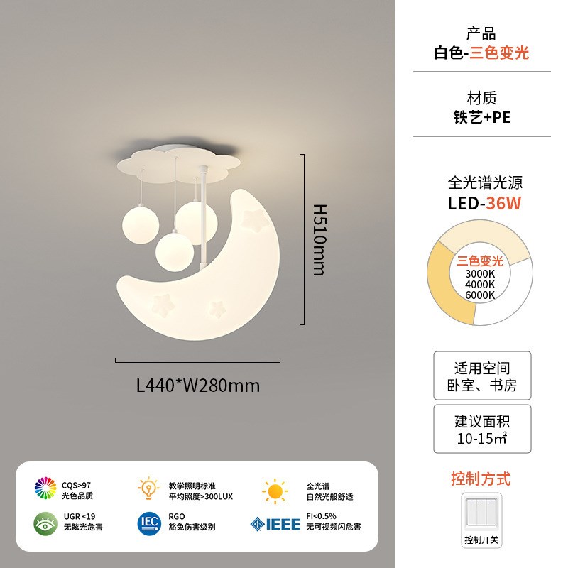 月亮设计师吊灯云朵奶油风主卧室灯护眼书房新款温馨儿童房灯具