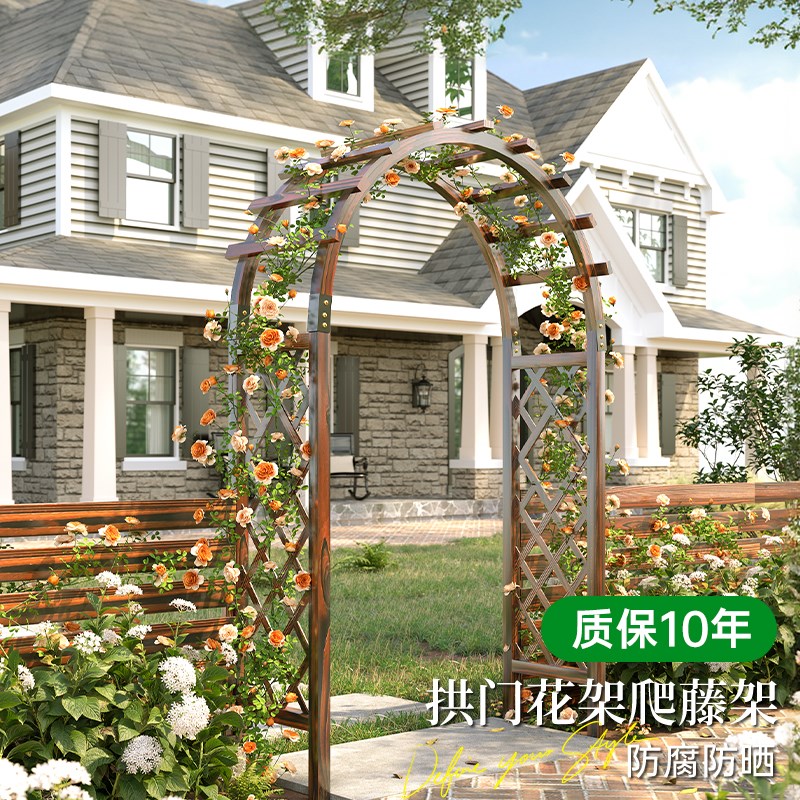 拱门花架爬藤架防腐木花园庭院装饰月季户外拱形支架栅栏葡萄架子 - 宜清企业店