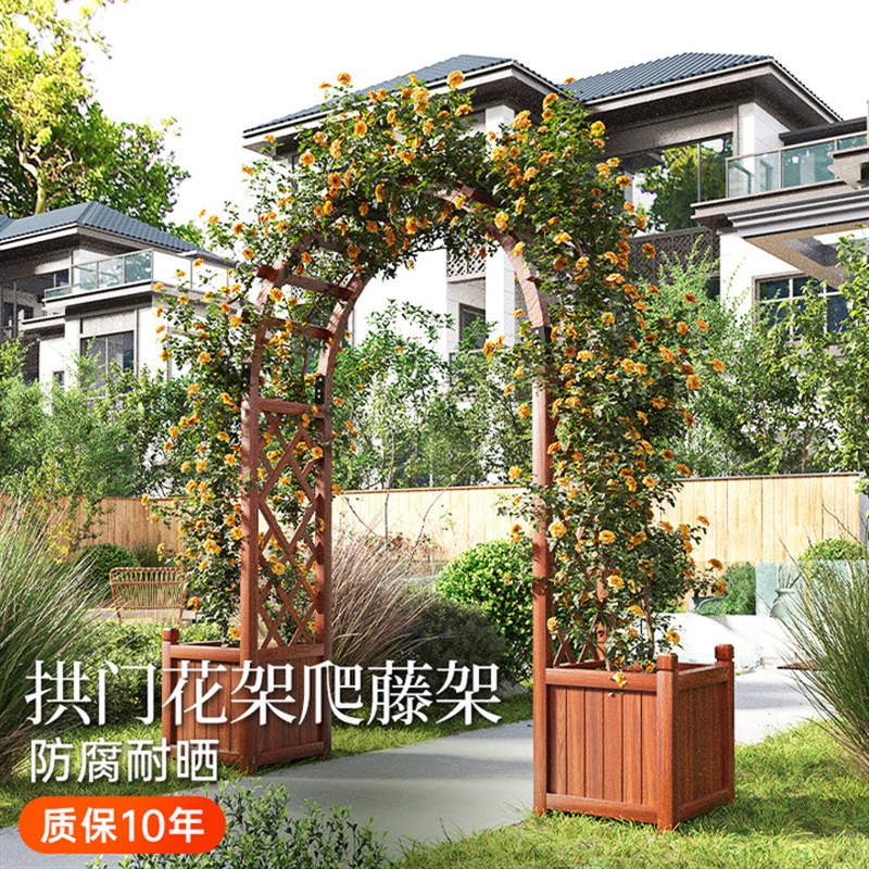 您的位置:他他商城  >   >  拱门花架爬藤架防腐木花园庭院装饰月季户外拱形支架栅栏葡萄架子