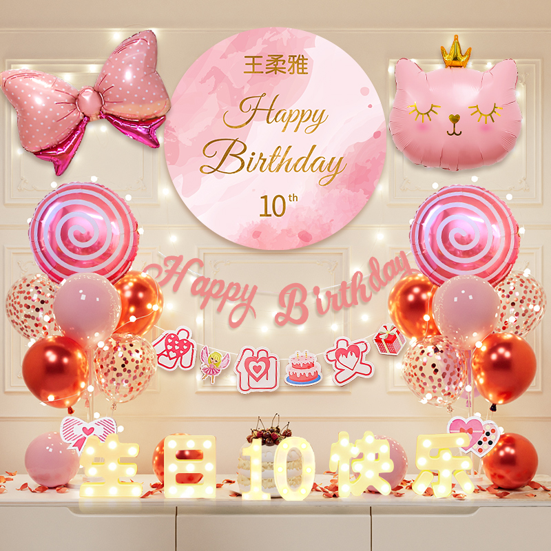 女孩网红生日场景氛围感气球装饰十岁快乐派对儿童背景墙布置12 - 华章旗舰店