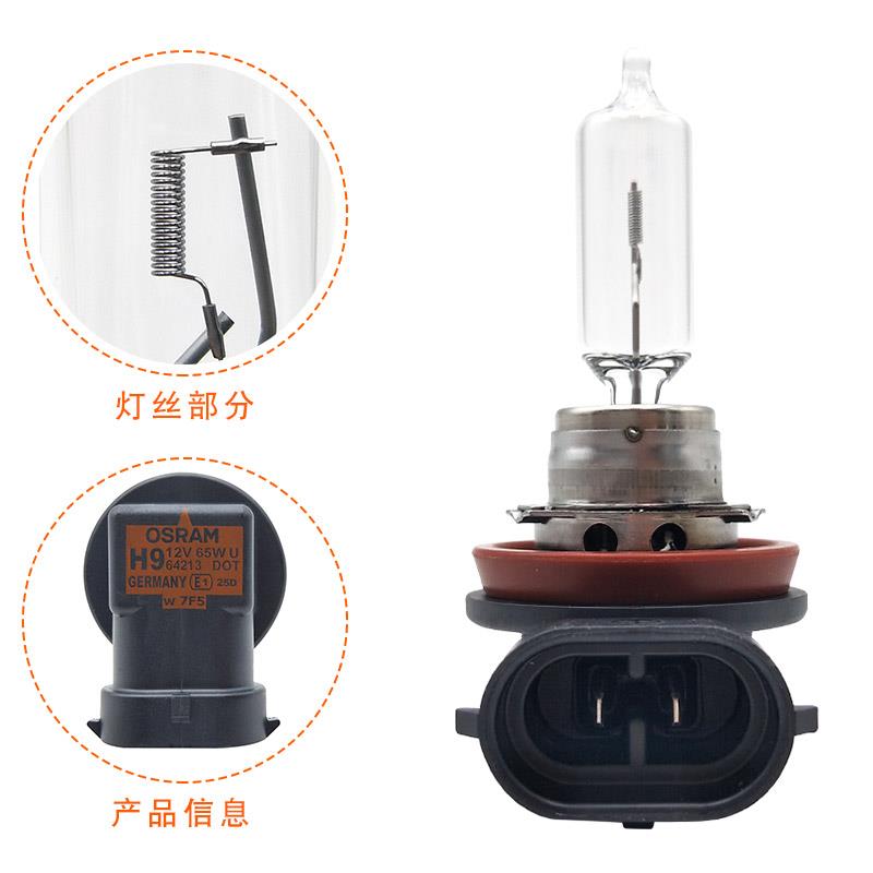 欧司朗H9灯泡12v远光灯65w德国原装进口64213卤素灯泡汽车前大灯 - 实创百货官营店