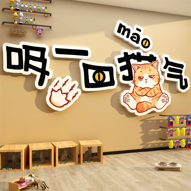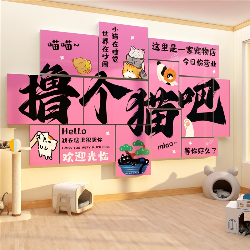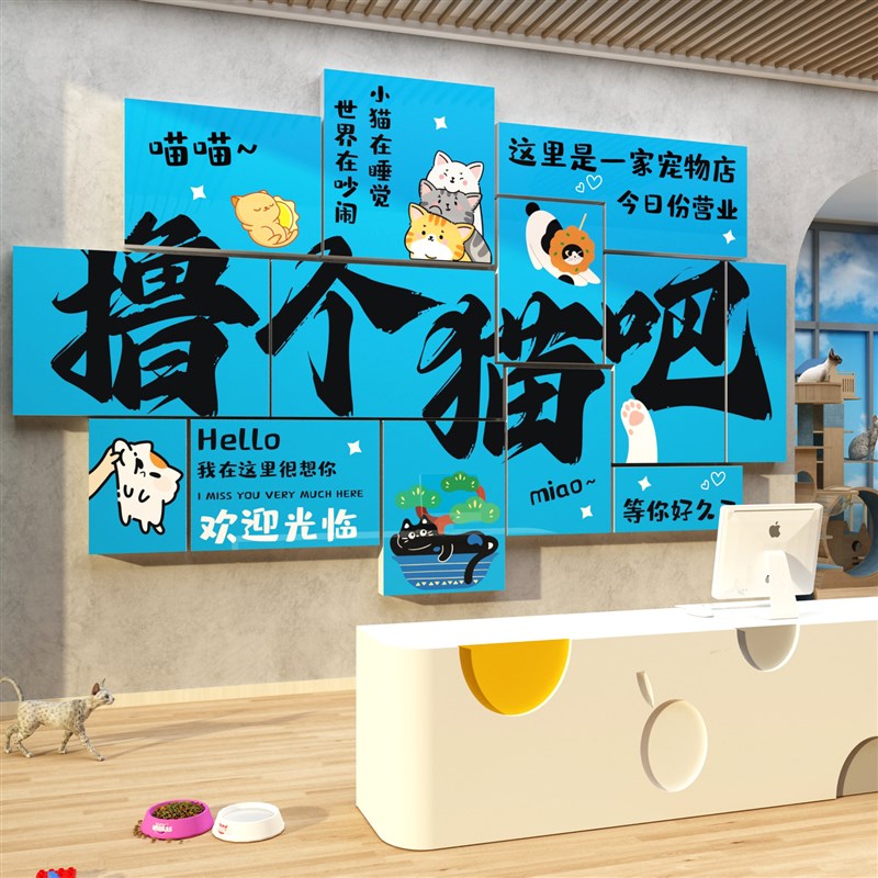 宠物店装饰墙面修医院用品广告海报贴纸撸猫咖创意收银台贴画背景 - 壁峭崖悬商城