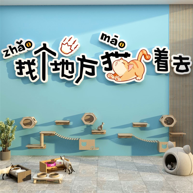 宠物店装饰墙面修医院用品广告海报贴纸撸猫咖创意收银台贴画背景