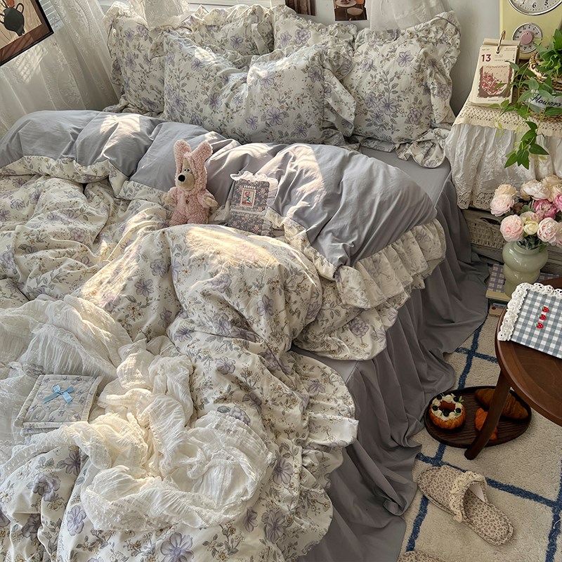 法式花边A类床上四件套新款碎花床裙被套罩床单宿舍X床品三件套4 - 缘益速设计馆01