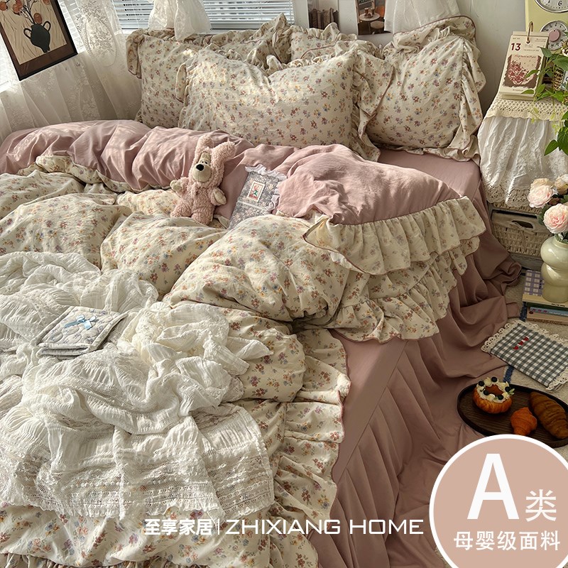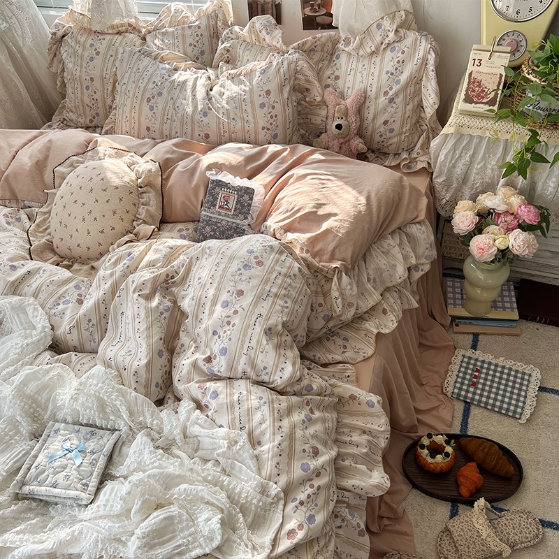 您的位置:他他商城  >   >  法式花边A类床上四件套新款碎花床裙被套罩床单宿舍X床品三件套4