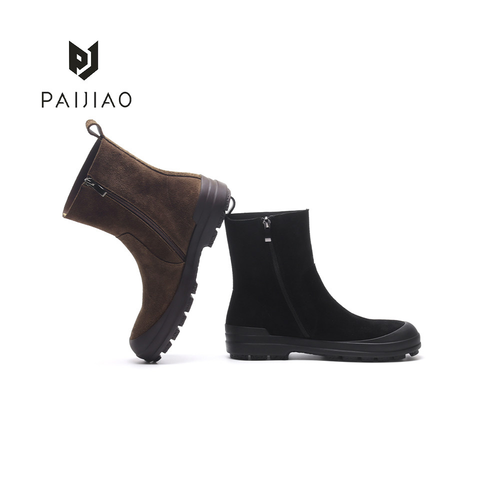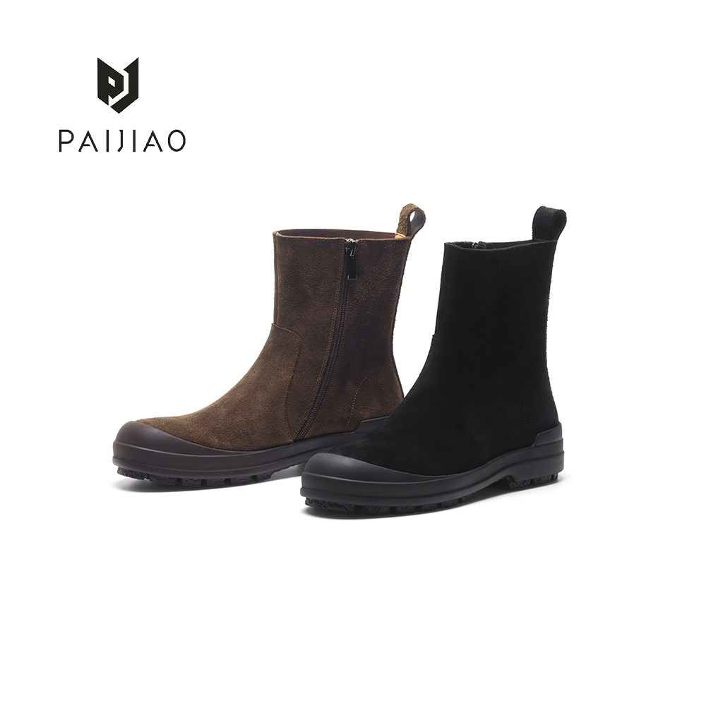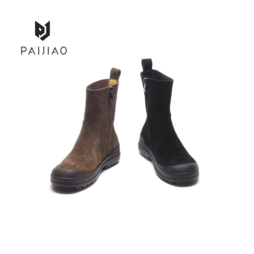 牛皮反绒侧拉链休闲烟筒复古手工圆头低跟单靴女靴马丁靴XC5972-3 - PAIJIAO排角 手工真皮女鞋