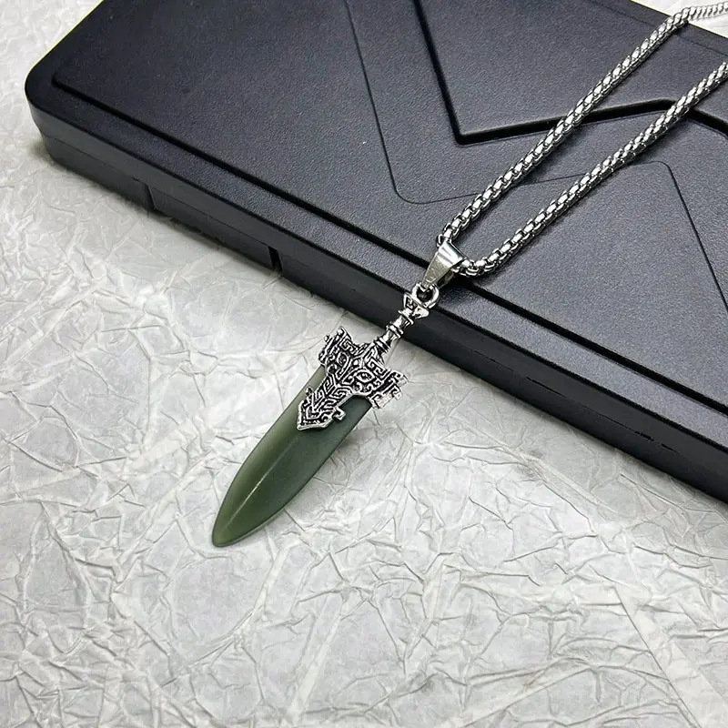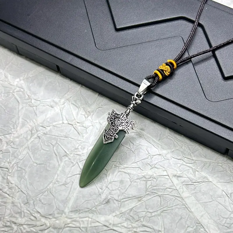 青铜宝剑仿玉和田青玉剑吊坠精致小剑帅气小众民族风吊坠钥匙扣款 - 伟大航路杂货铺