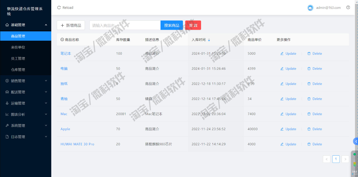 SpringBoot+Vue物流快递仓库管理系统java前后端分离bs源码mysql - 微科软件
