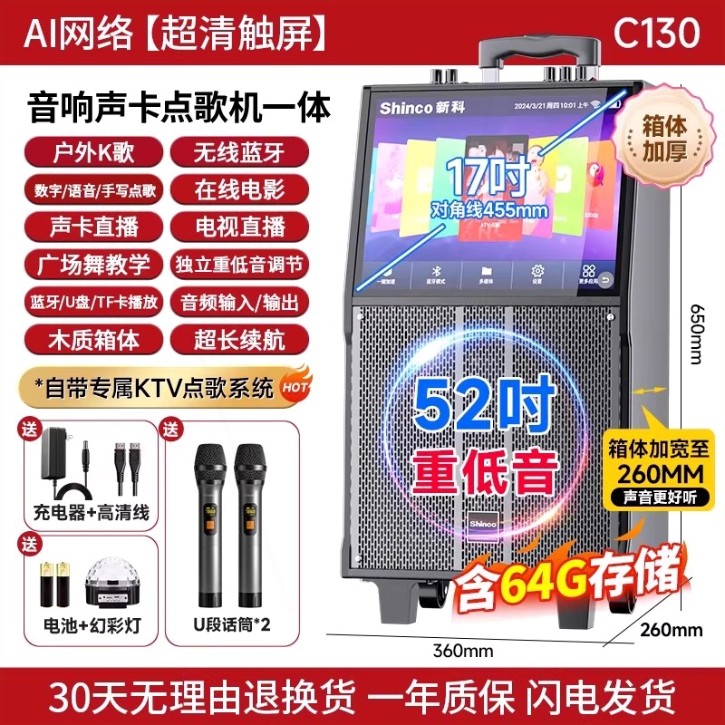 您的位置:他他商城  >  电器  >  新科广场舞音响带显示屏幕户外k话筒麦克风一体机歌音箱唱ktv家用