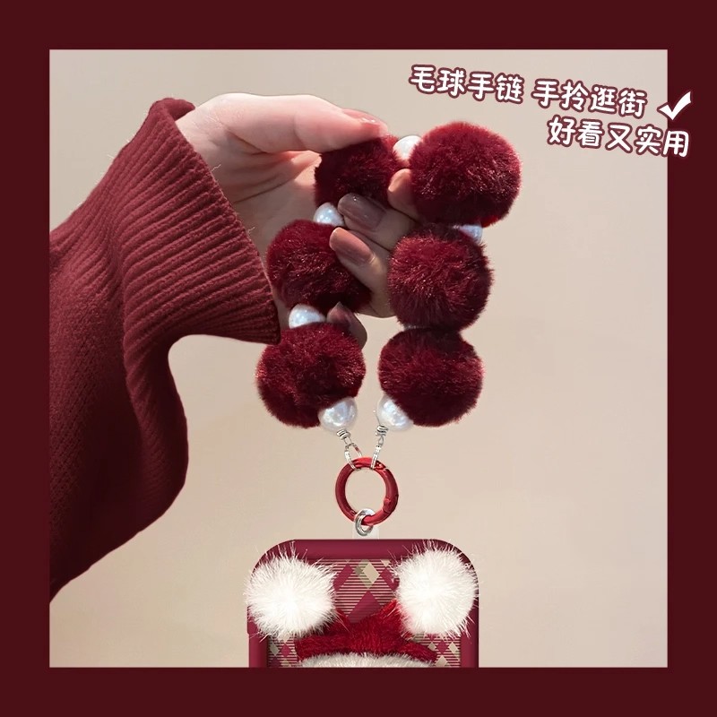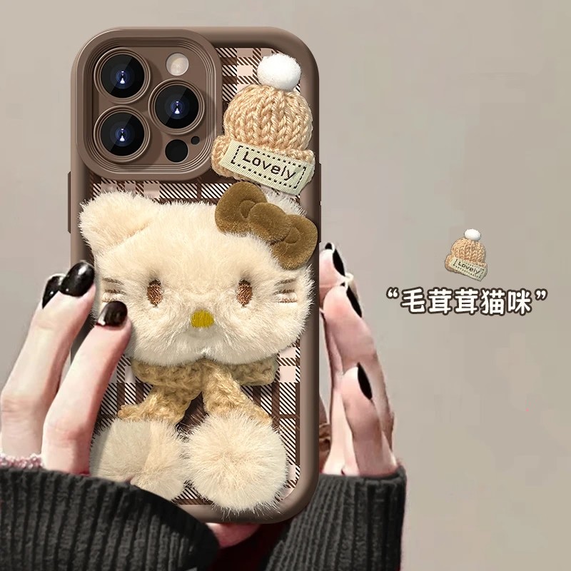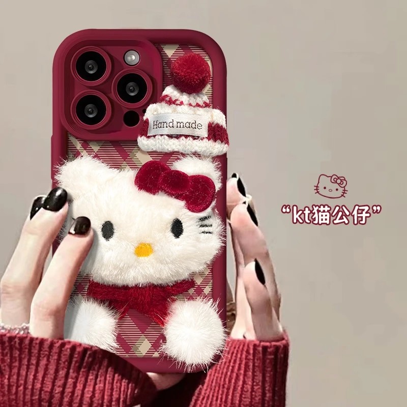 秋冬围巾毛绒KT猫适用苹果17手机壳iPhone16/15PROMAX酒红华为PURA80情侣VIVOX300可爱RENO14防摔MATE60创意 - 晋领旗舰店