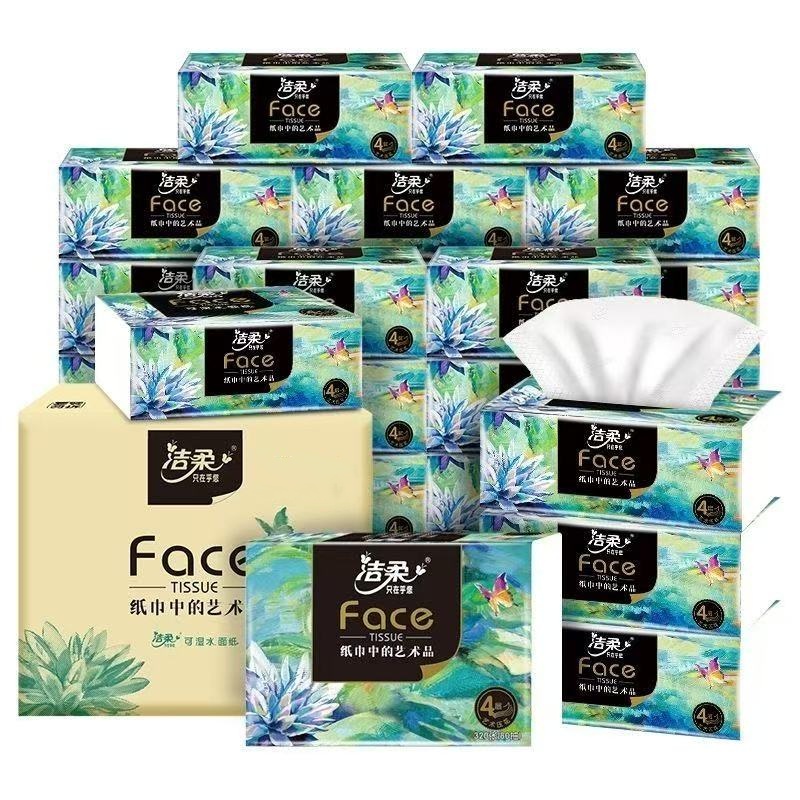 洁柔纸巾油画抽纸4层80抽4包家用卫生纸餐巾纸可湿水面巾纸擦手纸 - 纸品折扣品牌馆
