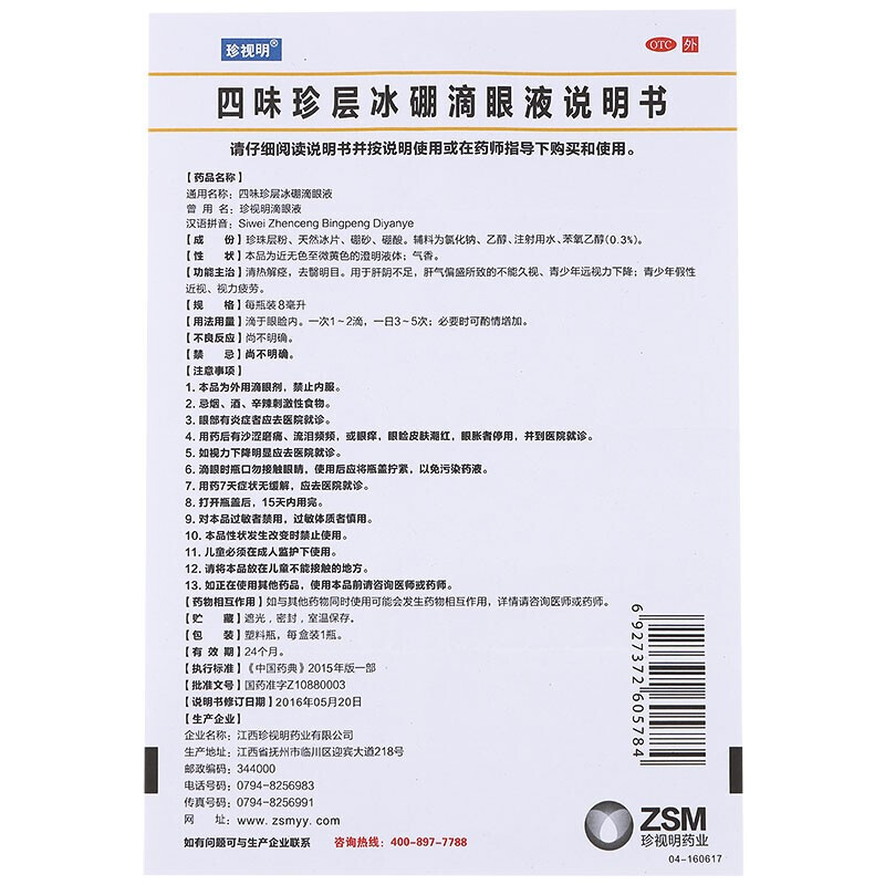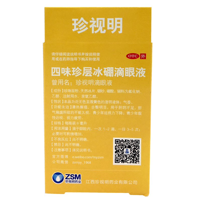 珍视明 四味珍层冰硼滴眼液8ml 视力下降假性近视清热解 - 都会好大药房旗舰店