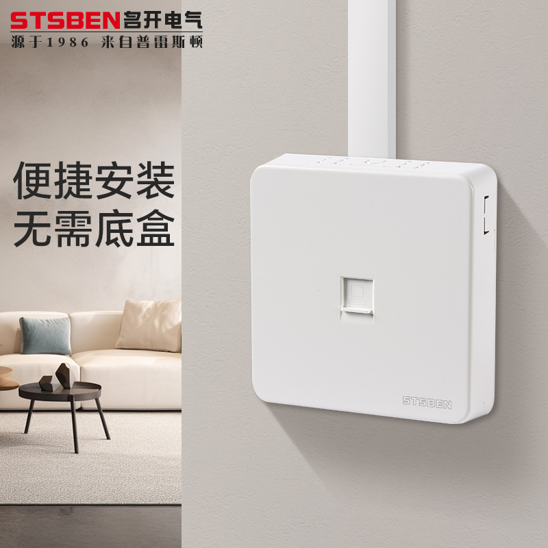 86型明装千兆网络插座电脑宽带信息面板明线盒含模块六类网线插座 - stsben旗舰店