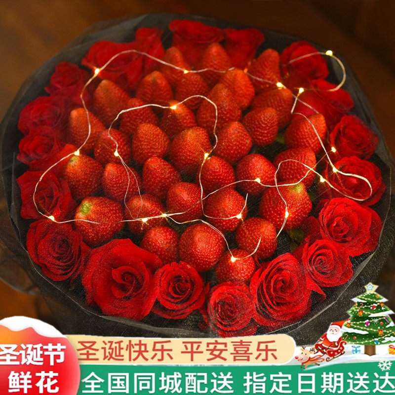 圣诞节平安夜草莓花束广东省云浮市云城区罗定市鲜花店同城配送