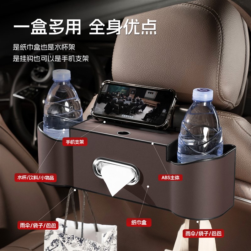 车载储物盒汽车内椅背挂钩收纳盒纸巾盒水L杯架多功能收纳盒置物 - 盛竹楼日用品的小店53