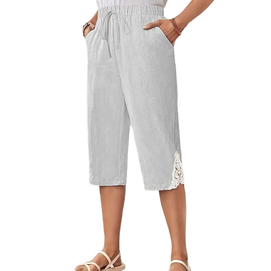 Women's linen textured lace casual shorts女亚麻蕾丝休闲短裤 - 八零九零时尚店