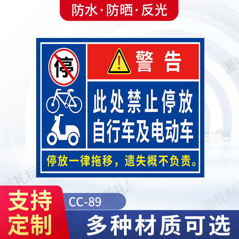 此处禁止停放自行车电动车提示牌禁止停放电动自行车警示牌提示牌 - 温州市浙礼标牌工艺厂