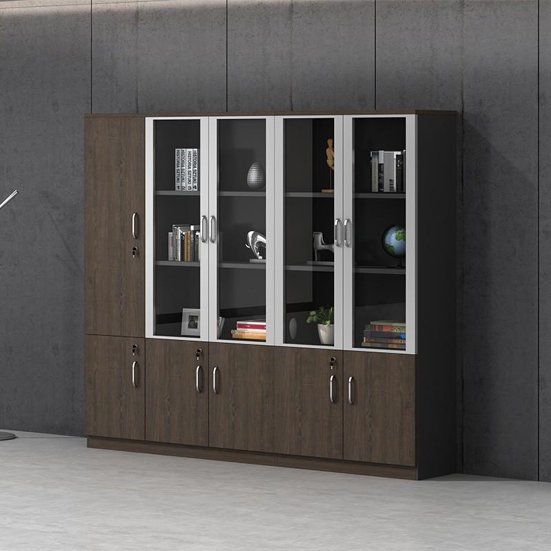 办公室文件柜木质档案资料柜简约现代带门玻璃书柜落地收纳储物柜 - 万新机械