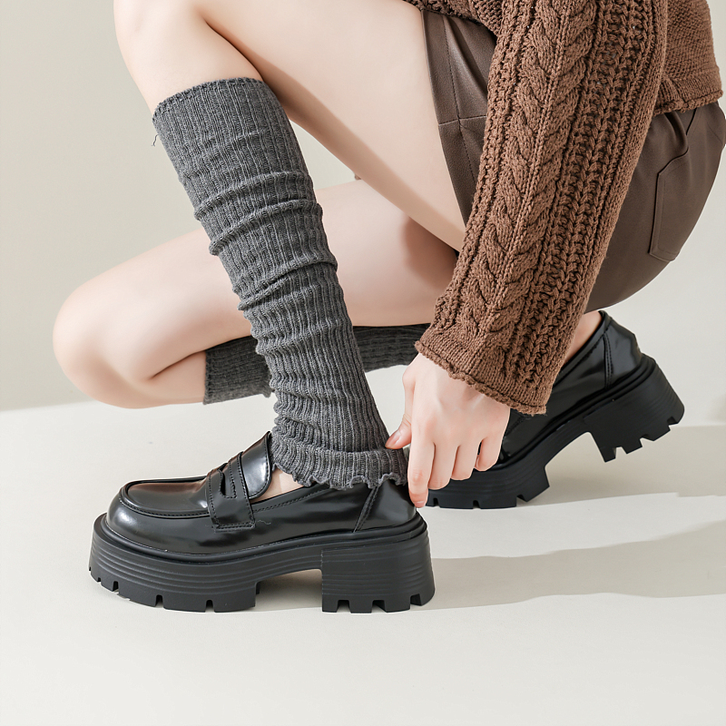 洞洞妖 白色粗针袜套女秋冬季搭长靴纯棉中长筒堆堆叠穿jk小腿袜 - 洞洞妖 DoDoYo