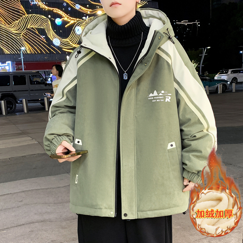 拼接外套男孩秋冬季新款潮牌加绒加厚夹克青少年男装士保暖棉衣服 - 帅小子青少年潮牌男装