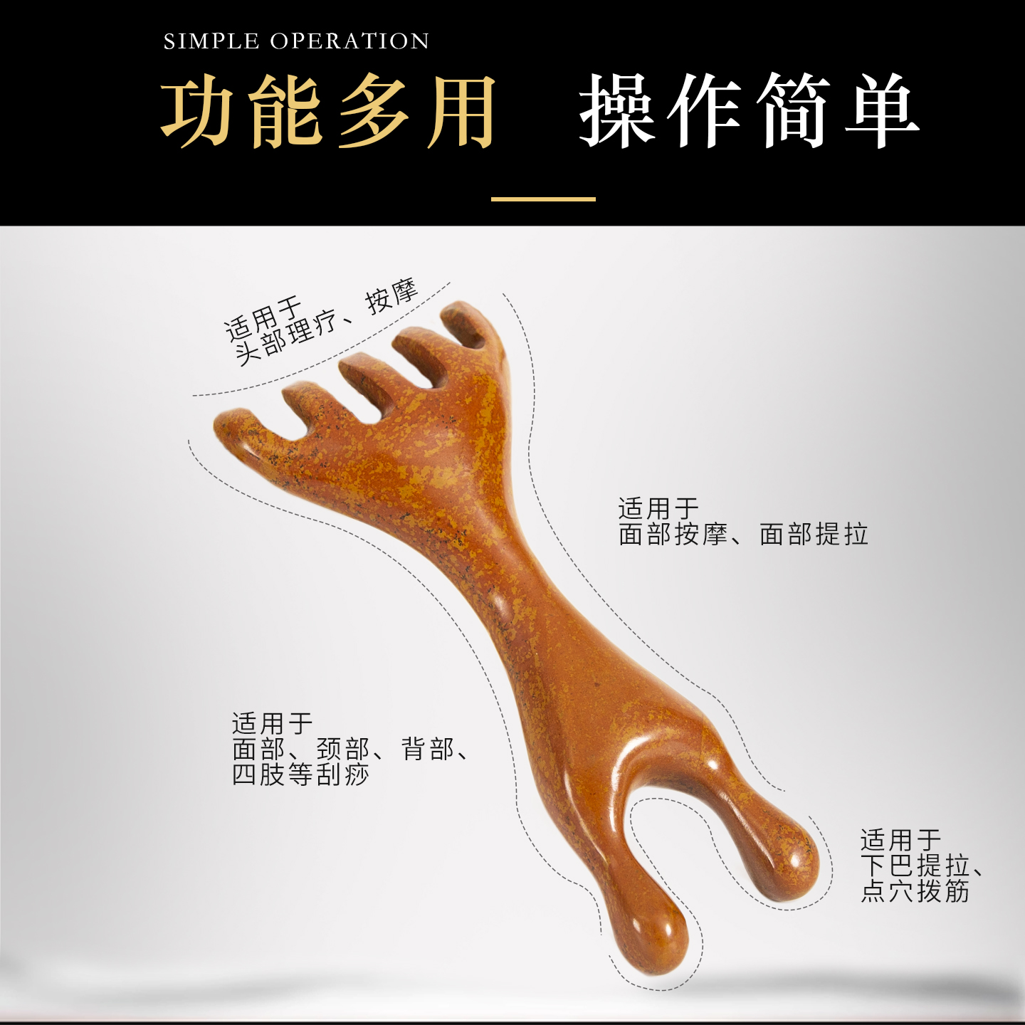 泗滨砭石经络按摩梳子头部五爪按摩器刮痧梳子家用经络梳子美容院