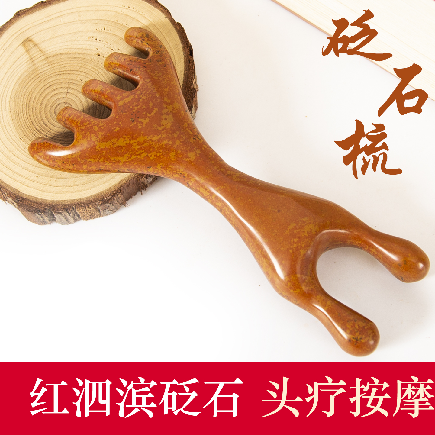 泗滨砭石经络按摩梳子头部五爪按摩器刮痧梳子家用经络梳子美容院 - 春夕保健用品旗舰店