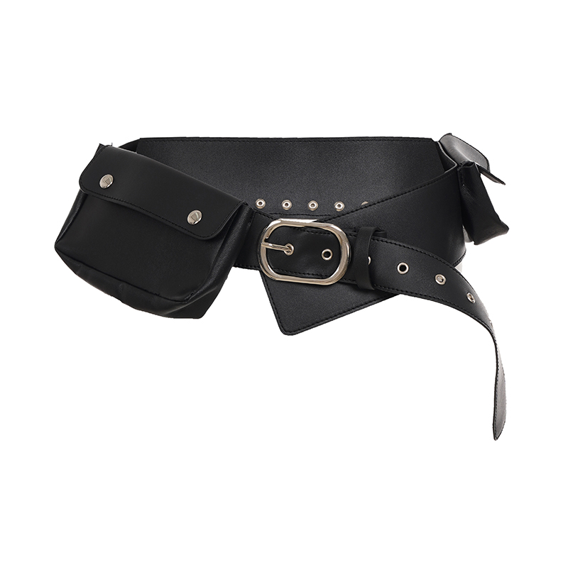 WEEKEEP 美式街头多功能口袋铆钉设计皮革腰带辣妹百搭酷帅腰封 - WEEKEEP