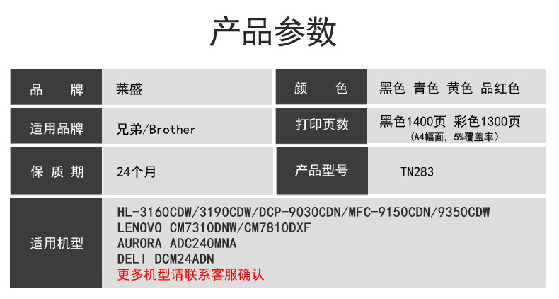 您的位置:他他商城  >  文体  >  莱盛 适用兄弟TN283粉盒HL-3160CDW DCP-9030CDN彩色墨粉盒HL-3190CDW MFC-9150CDN MFC-9350CDW硒鼓墨盒鼓体
