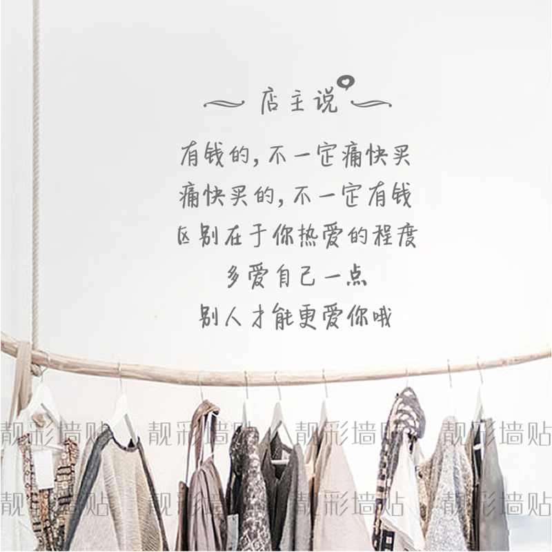 有钱的不一定痛快买服装店铺店主的话文字墙贴纸创意个性墙面装饰