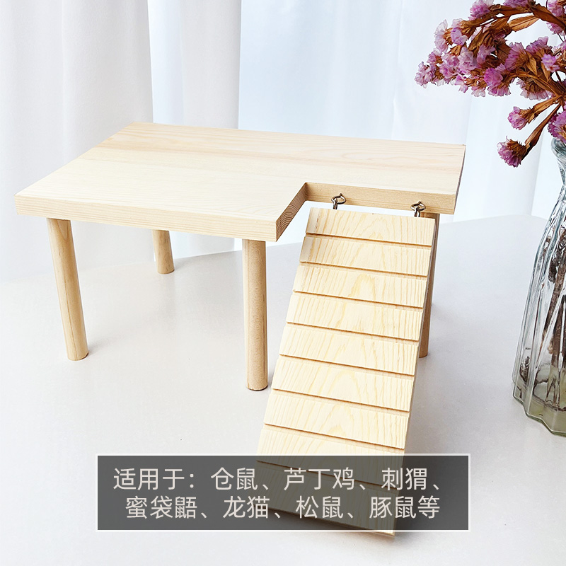 仓鼠平台实木二层芦丁鸡刺猬金丝熊小宠物L形桌子带楼梯造景用品