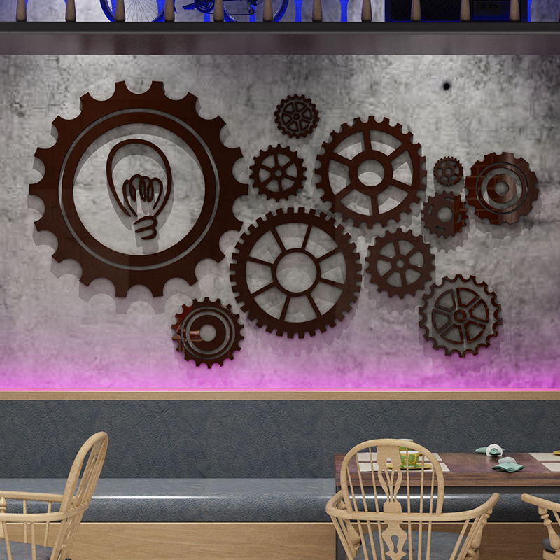 创意齿轮清酒吧馆装饰品装修设计小场景布置工业风墙面贴纸烧烤店 - 悟空家饰