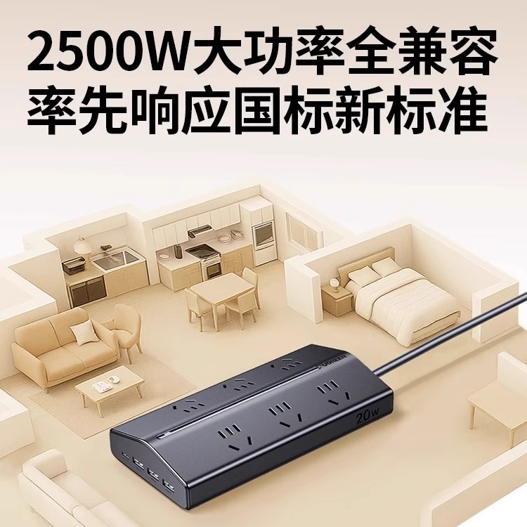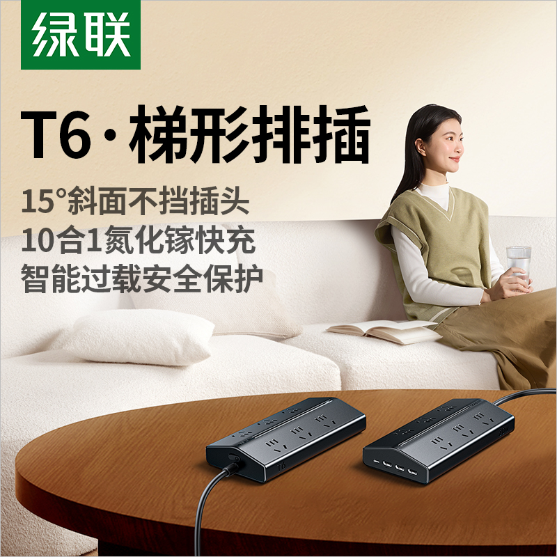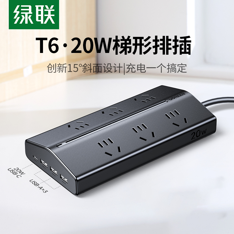 绿联T6梯形排插插座插排多功能带USB插位桌面电源扩展器接拖线板 - 绿联维联特专卖店
