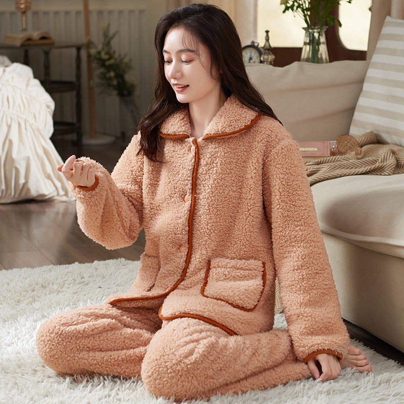 冬季珊瑚绒女士睡衣套装大码宽松秋冬加厚保暖法兰绒可外穿家居服 - 顿尼科旗舰店