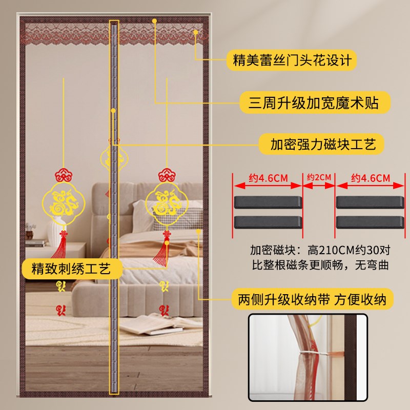 您的位置:他他商城  >  居家  >  大门防蚊纱门农村自建房门帘防虫纱窗免打孔磁性家用客厅隔断帘子