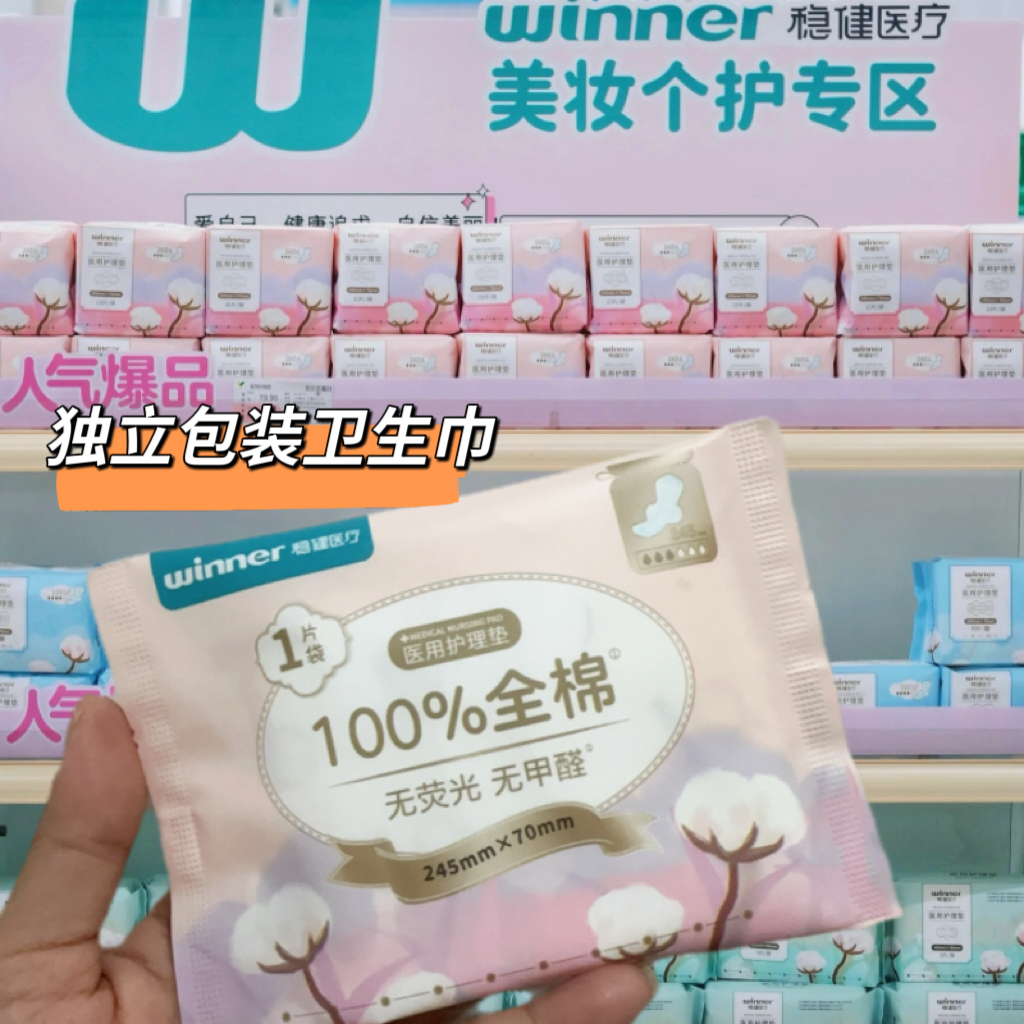 稳健医疗单片装医用卫生巾械字号妇科防侧漏护理巾独立包装卫生巾 - 梓清生活馆