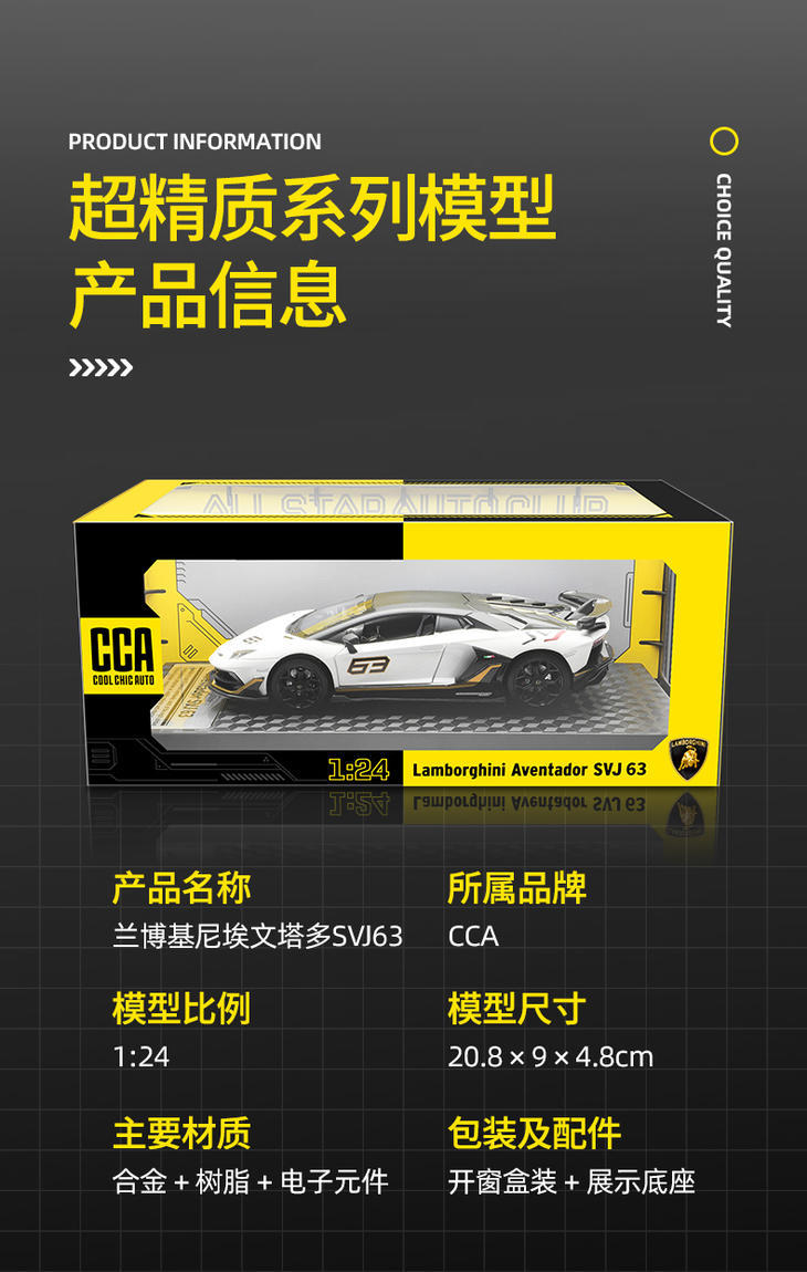 彩珀CCA合金汽车模型1:24兰博基尼帕加尼名跑车声光玩具送礼品袋 - 童乐玩优品
