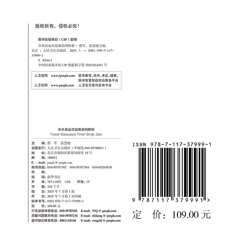 阜外高血压疑难病例解析 蔡军 张慧敏 中国医学科学院阜外医院系列丛书 平装 人民卫生出版社9787117379991 - 希尔麦图书专营店