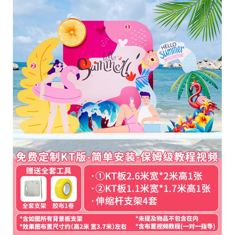 夏日季海洋主题多巴胺泳池活动氛围布置户外团建气球背景墙kt展板 - d[s252484366]