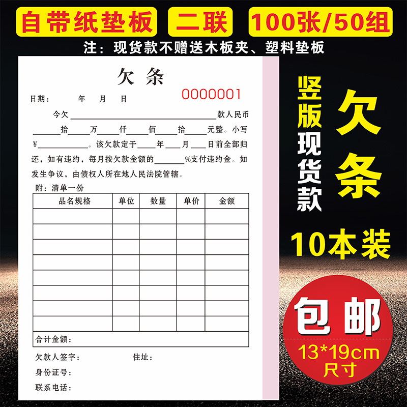 欠条本欠款单欠款条欠货款正规个人借条贷款O通用凭证合同二联单 - tb1611138149