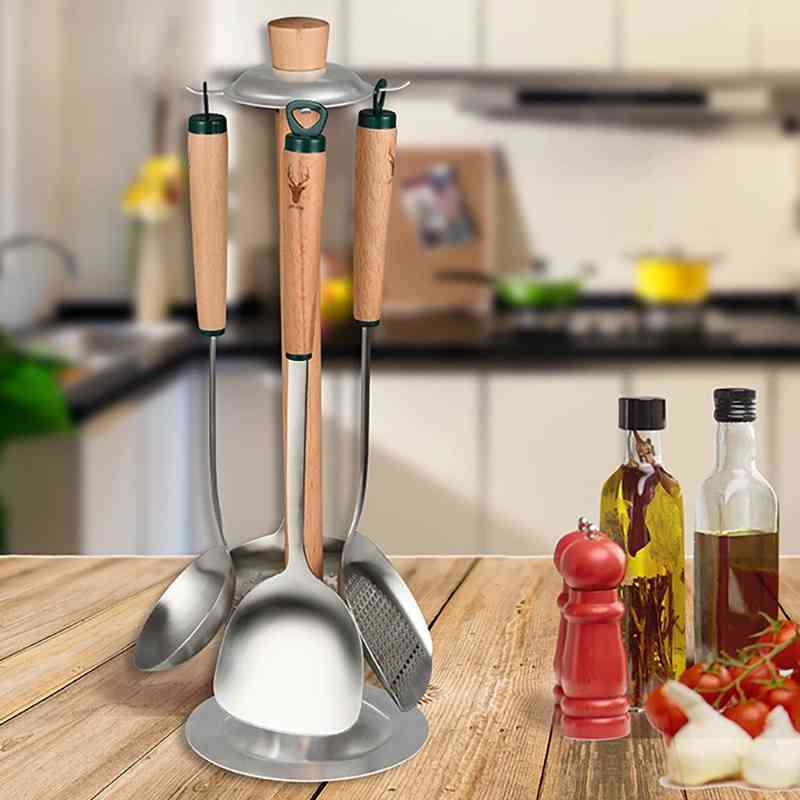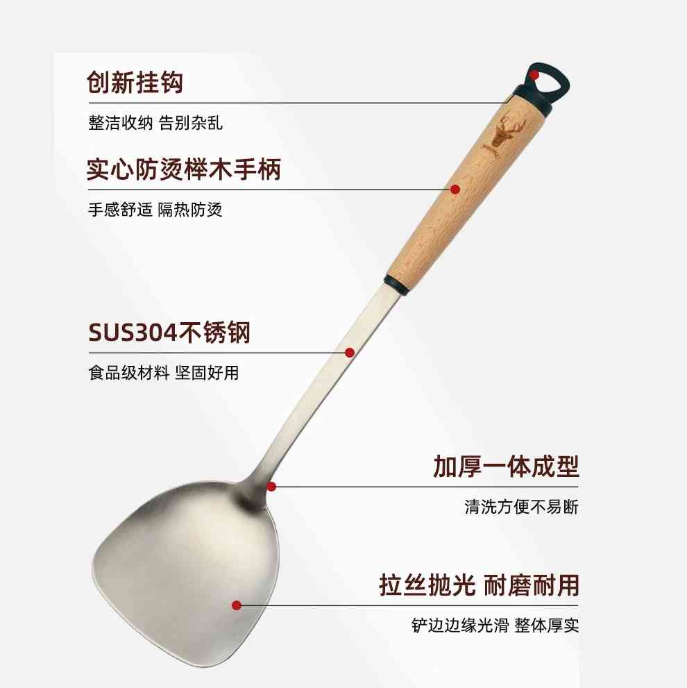 304不锈钢锅铲煎铲油炸捞勺加长木柄漏铲家用厨房用具烹饪多用铲 - 雨梅科技店