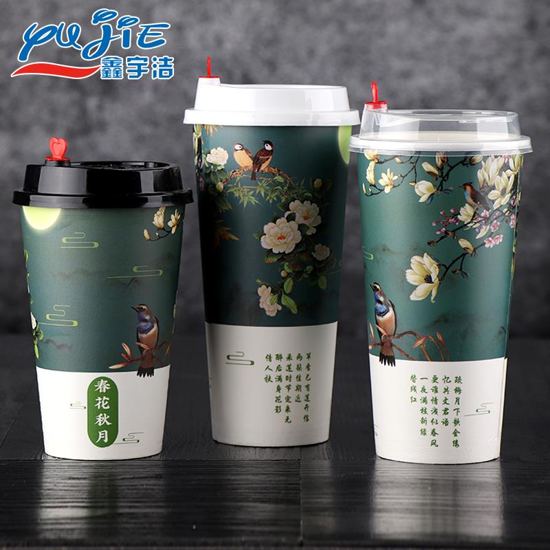 网红加厚一次性纸杯奶茶杯子带盖咖啡杯500ml饮料果汁外卖杯定制 - tb4644398509的小店