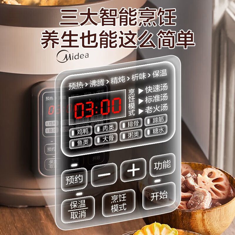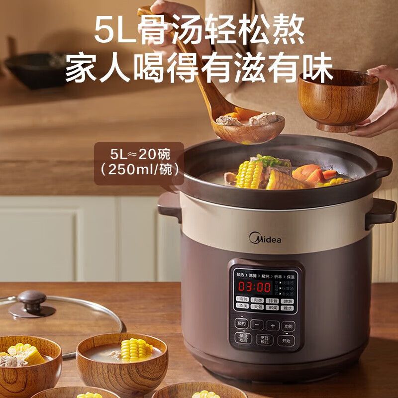 美的电炖锅家用5L慢炖文火智能预约定时煲汤锅全自动煮粥锅电炖盅