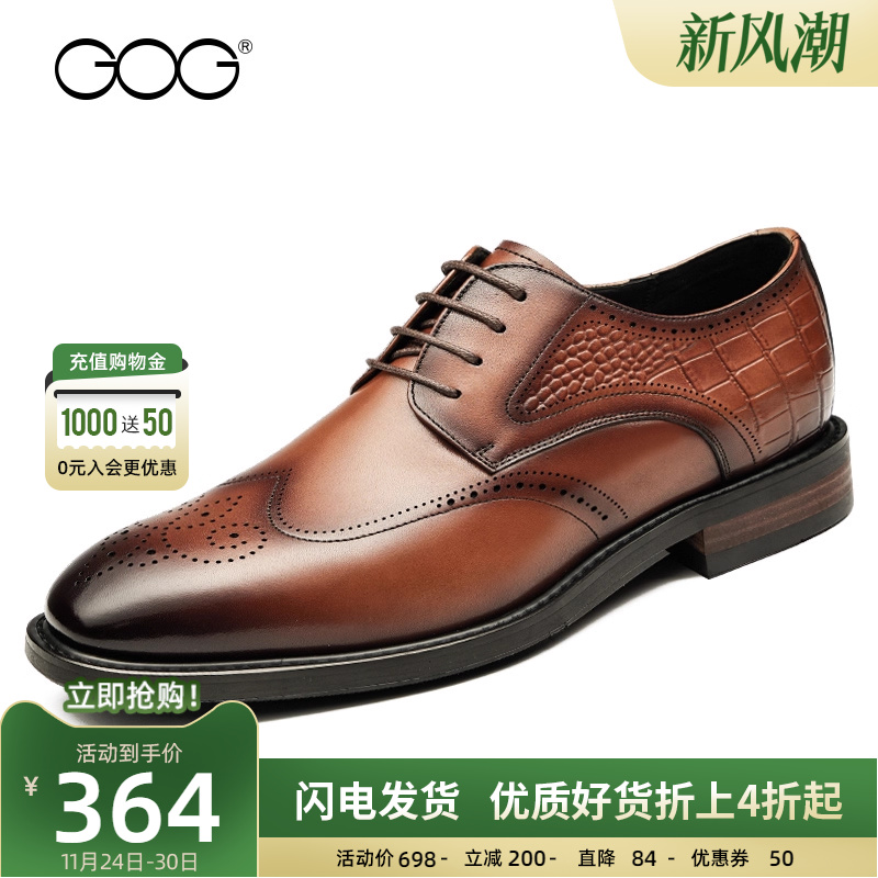 高哥内增高皮鞋英伦商务男鞋2025秋季新款布洛克正装新郎婚鞋子 - 高哥增高鞋旗舰店